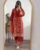 4 Piece Chiffon Embroidered Dress - Navy Delight